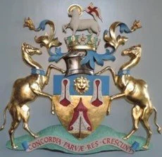 When the Charles II Arms were unveiled at the Company’s Livery Dinner in 1964 to great acclamation, Sir James Ritchie, the then Master of the London Company of Merchant Taylors, was present and was so impressed with the carved Arms that Sir James invited Dick Reid to quote for the carving of the Queen Mother’s Arms for the London Merchant Taylors’ Hall in Threadneedle St. Dick was awarded the work against competition from others. This was the second of the large carved arms which Dick was to produce (see photo below), followed by:
